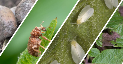 • Pueden atacar el cultivo en cualquier estado de desarrollo. Generalmente las poblaciones de insectos plaga chupadores son las responsables de la diseminación del virus, además de utilizar semilla infectada y por contagio entre plantas en el campo y entre tubérculos en las áreas de almacenamiento.